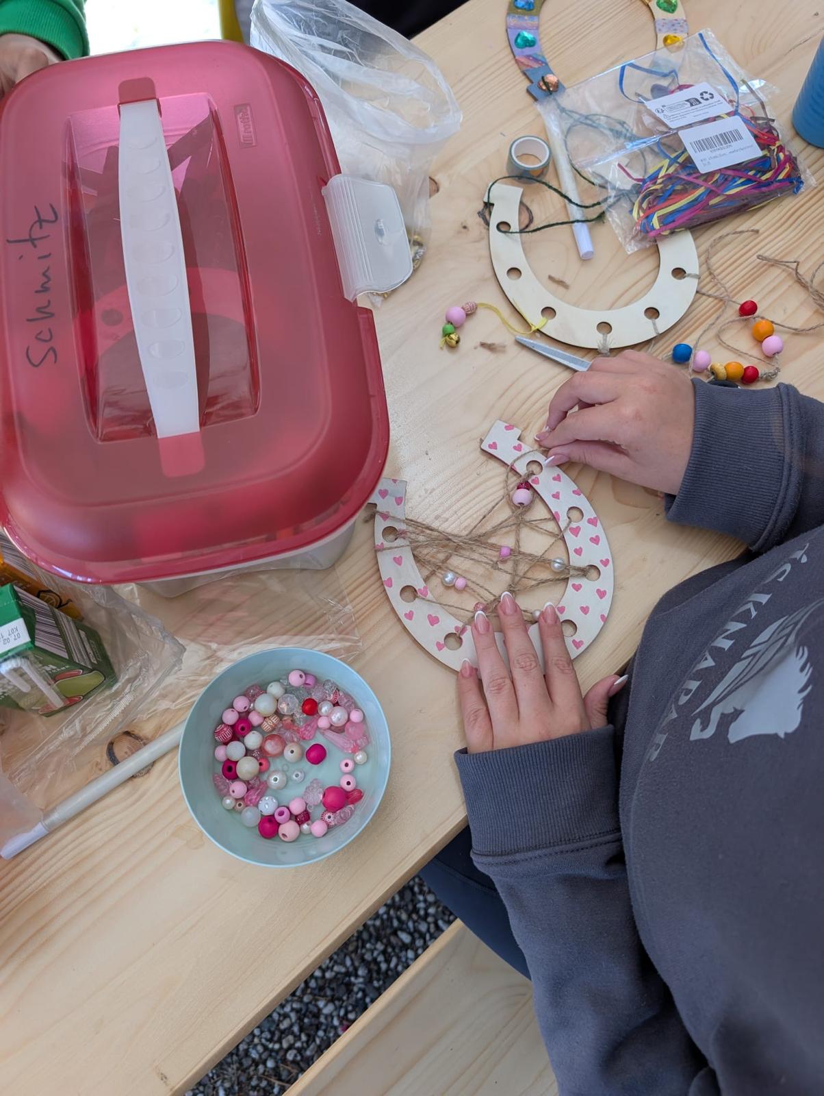 Währenddessen betreute unsere Heilpädagogin Elisabeth Baran die Kinder und bastelte tolle Kunstwerke mit ihnen.