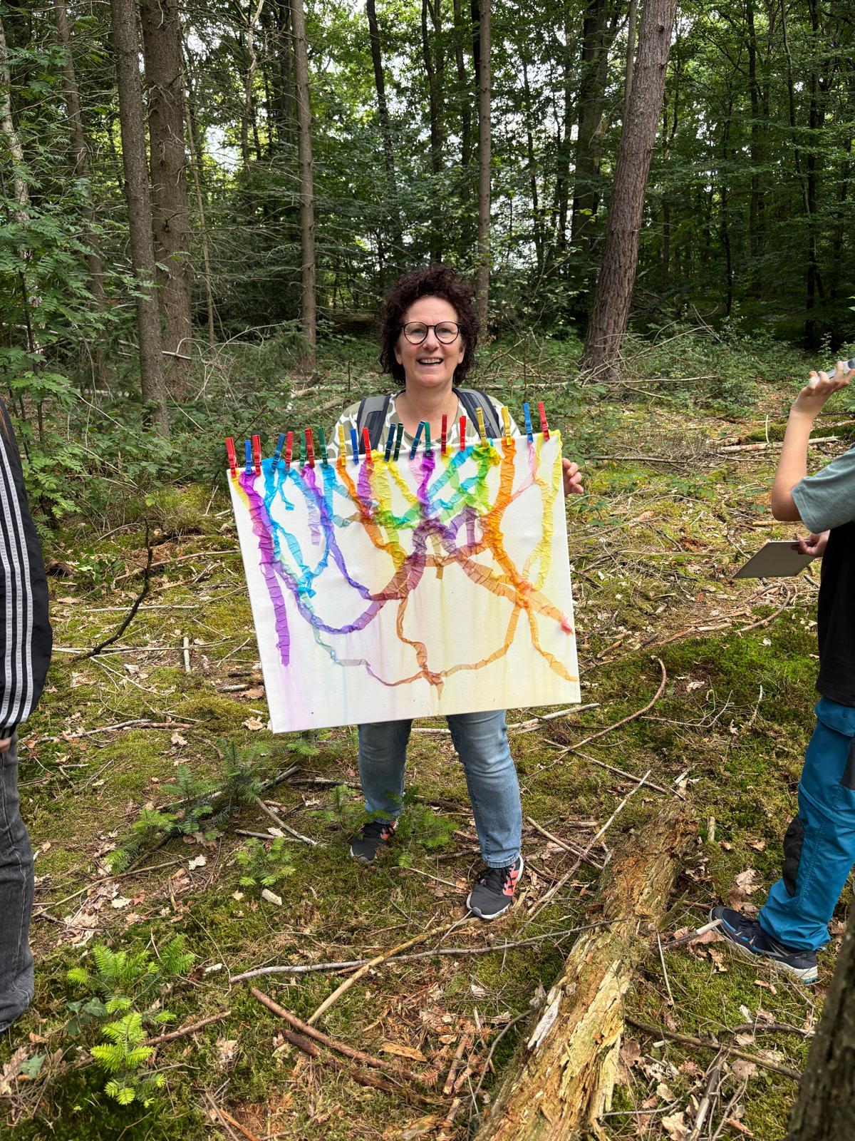 Die Eltern drückten mit viel Farbe und Form auf Papier aus, wofür im Alltag oft die Zeit fehlt. Nämlich die Therapiezeit auf die eigene Resilienzfähigkeit und eigene spezifische Ressourcen hin zu reflektieren. Entstanden sind vielfältige und ausdrucksstarke Werke der Eltern, häufig inspiriert von der Natur – Sinnbilder für Kraft, Hoffnung, Erneuerung und innere Stärke.