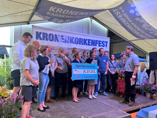 Die Spendensumme von 27.272 Euro wurde vor Ort noch mal auf 34.000 € erhöht – und das ist nur möglich, weil so viele Menschen an einem Strang ziehen: hinter den Kulissen, mittendrin, sammelnd, spendend oder helfend. Und nicht zu vergessen: ganze 96.614 kg Kronkorken seit dem letzten Fest – einfach Wahnsinn!